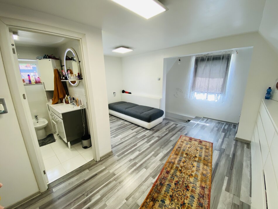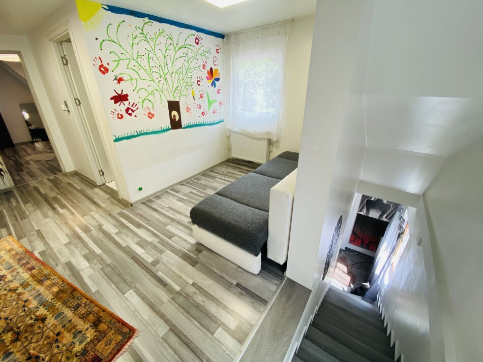 Die Raumaufteilung gliedert sich wie folgt: Im Erdgeschoss finden Sie eine große Wohnküche, ein Schlafzimmer, ein weiteres Zimmer (ideal als Kinderzimmer oder Büro) sowie einen praktischen Abstellraum. Im Obergeschoss stehen zwei weitere Schlafzimmer zur Verfügung, dazu ein modernes Badezimmer und ein heller Vorraum, der als kleine Sitz- oder Spielzone genutzt werden kann.