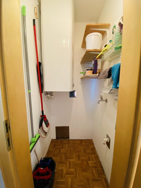 Abstellraum mit Boiler und Waschmaschinenanschluss