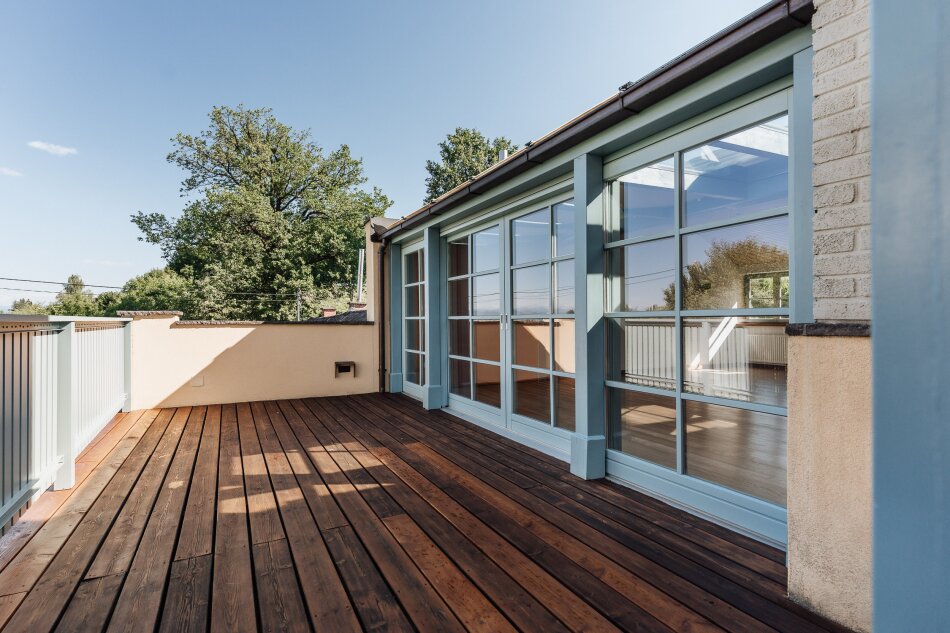 Diese außergewöhnliche Wohnung mit Hauscharakter befindet sich in einem stilvoll sanierten Gebäude aus dem Baujahr ca. 1900, das vollständig entkernt und generalsaniert wurde. Die Sanierung sowie sämtliche Umbauarbeiten erfolgten unter architektonischer Planung und Bauaufsicht. Die letzte wesentliche Adaptierung wurde 2012 durchgeführt. Alle Maßnahmen sind vollständig dokumentiert.Die Wohnung überzeugt durch eine großzügige Raumaufteilung mit sechs Zimmern, weitläufige Fensterflächen für ein lichtdurchflutetes Wohnambiente sowie eine hochwertige Ausstattung. Durch ihre Aufteilung und Außenflächen bietet sie ein Wohngefühl, das eher an ein Einfamilienhaus erinnert als an eine klassische Wohnung.