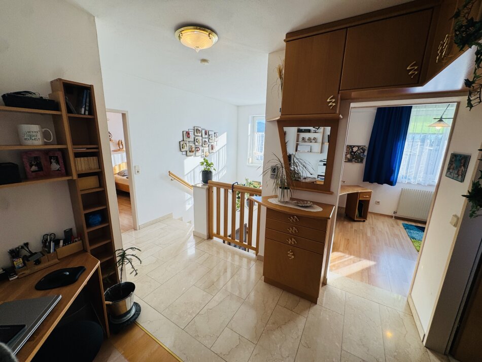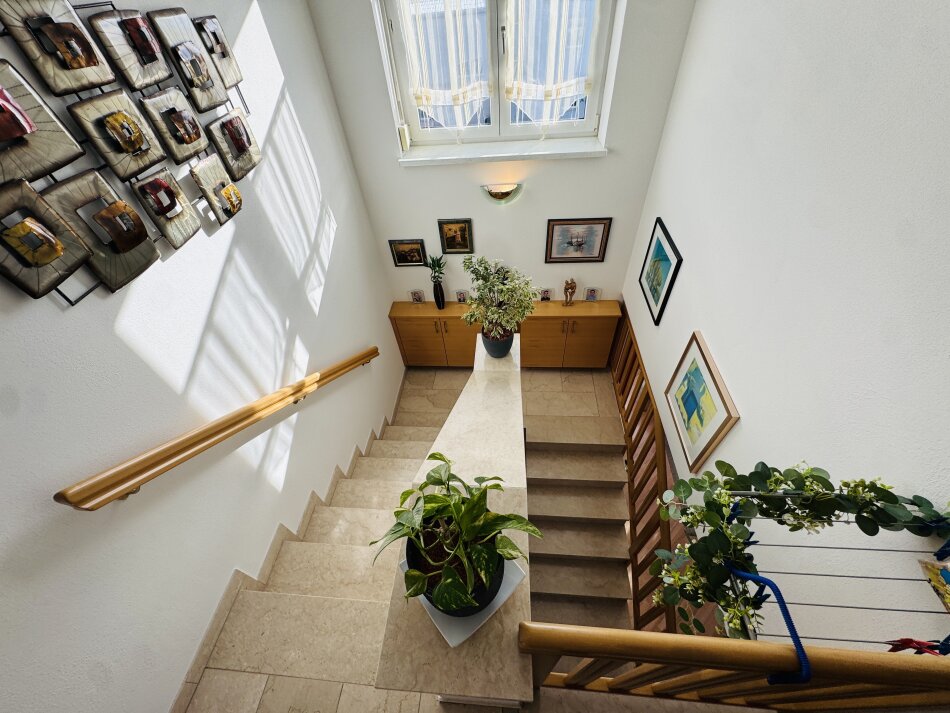 Über eine ansprechende Marmorstiege gelangt man vom Wohn- und Essbereich in das Obergeschoss.