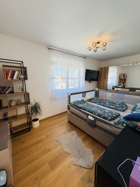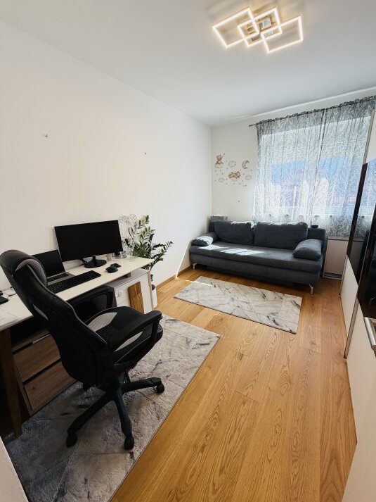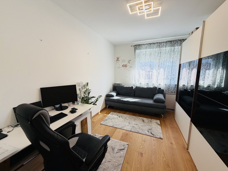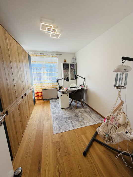 Die Immobilie verfügt über vier Zimmer, darunter ein ruhig gelegenes Schlafzimmer sowie zwei geräumige Kinderzimmer, die sich auch ideal als Büro oder Gästezimmer nutzen lassen. Das große Badezimmer mit moderner Wellnessdusche sorgt für zusätzlichen Komfort im Alltag.