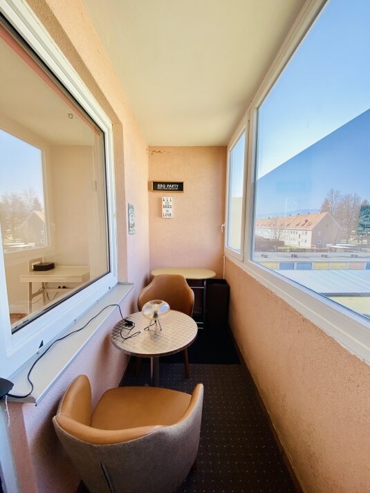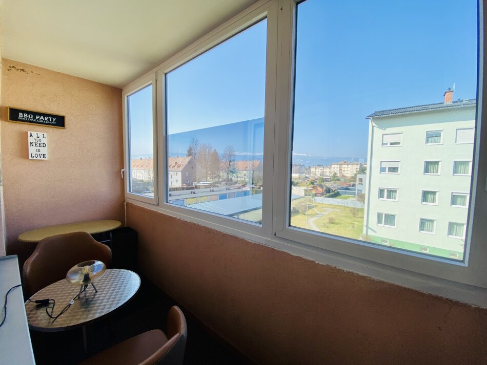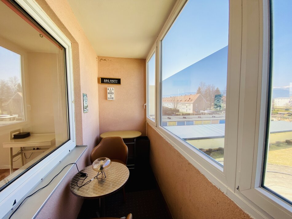 Die verglaste Loggia ( 2 Fenster kann man öffnen) bietet zusätzlichen Wohnkomfort und lädt zum Entspannen ein – auch bei weniger gutem Wetter.