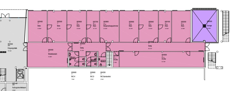 Die Bürofläche befindet sich komplett im Erdgeschoss und bietet eine funktionale Struktur: